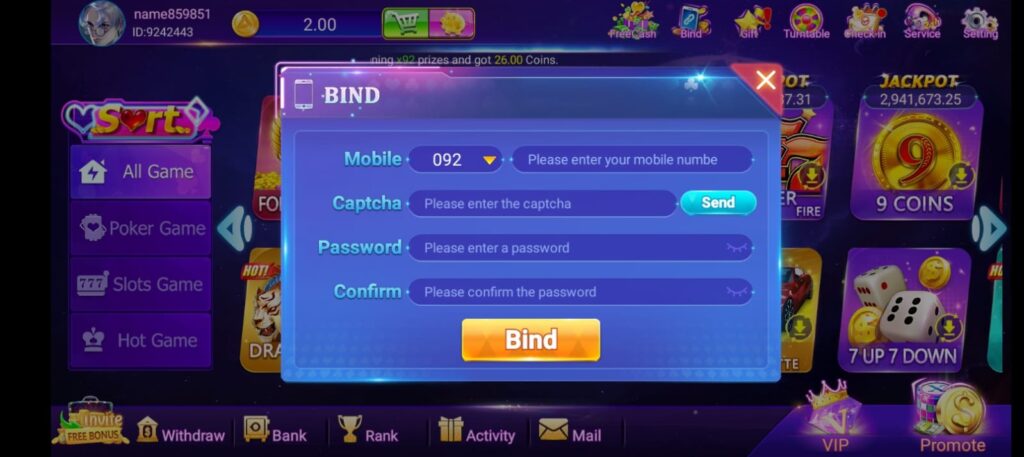 - Color / Prediction Challenges – Test your luck in short rounds.