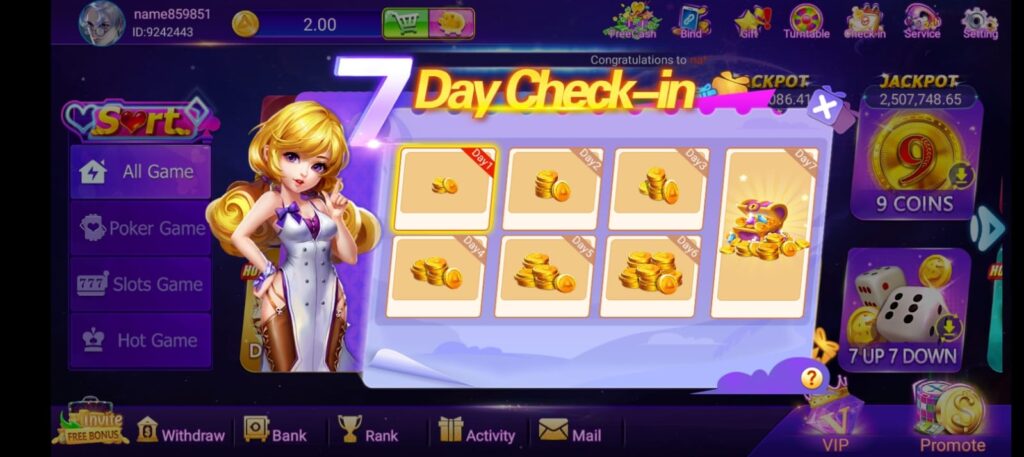 Players can earn money through different games such as slots, live casino games, card games, and betting rounds. Regular users can also benefit from daily bonuses, referral rewards, and special events.