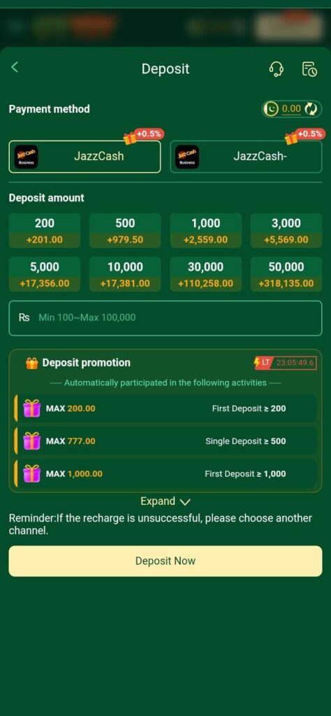 - Choose your deposit amount