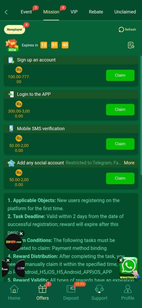 CT777 game apk First Login Mission To Earn Bonus