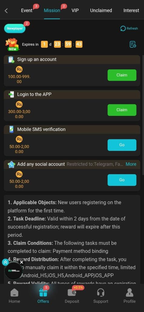 Create Account To Win Rs.530PKR For New Player,