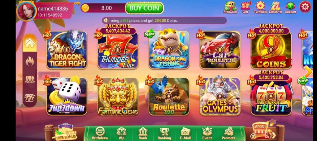- Rewards & Bonuses: The app often promotes daily login bonuses, welcome bonuses, free spins, and referral earnings for inviting friends.