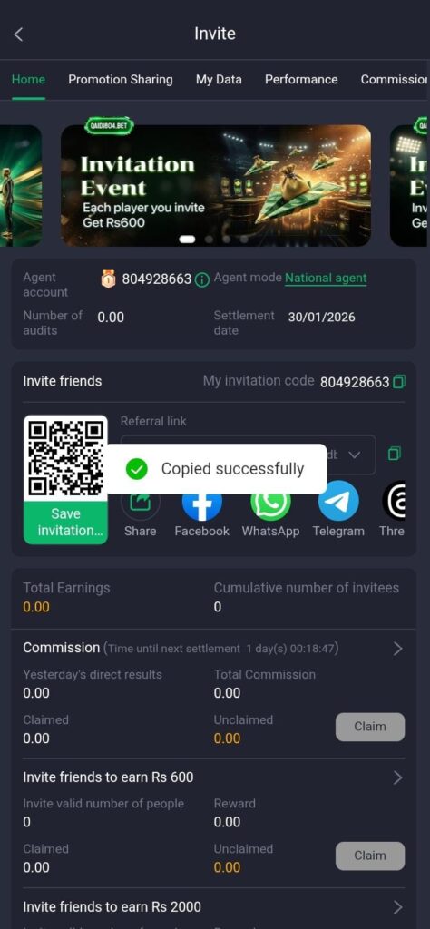 - Share referral link via WhatsApp, Facebook, or other platforms
