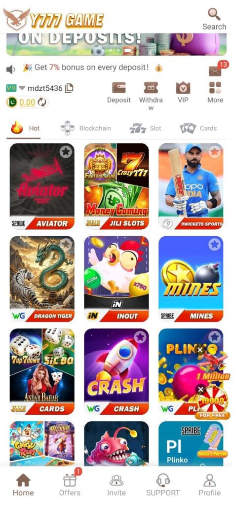 Y777 isn’t just a casual game — you can earn real cash by winning games, completing daily tasks, and joining referral programs.
